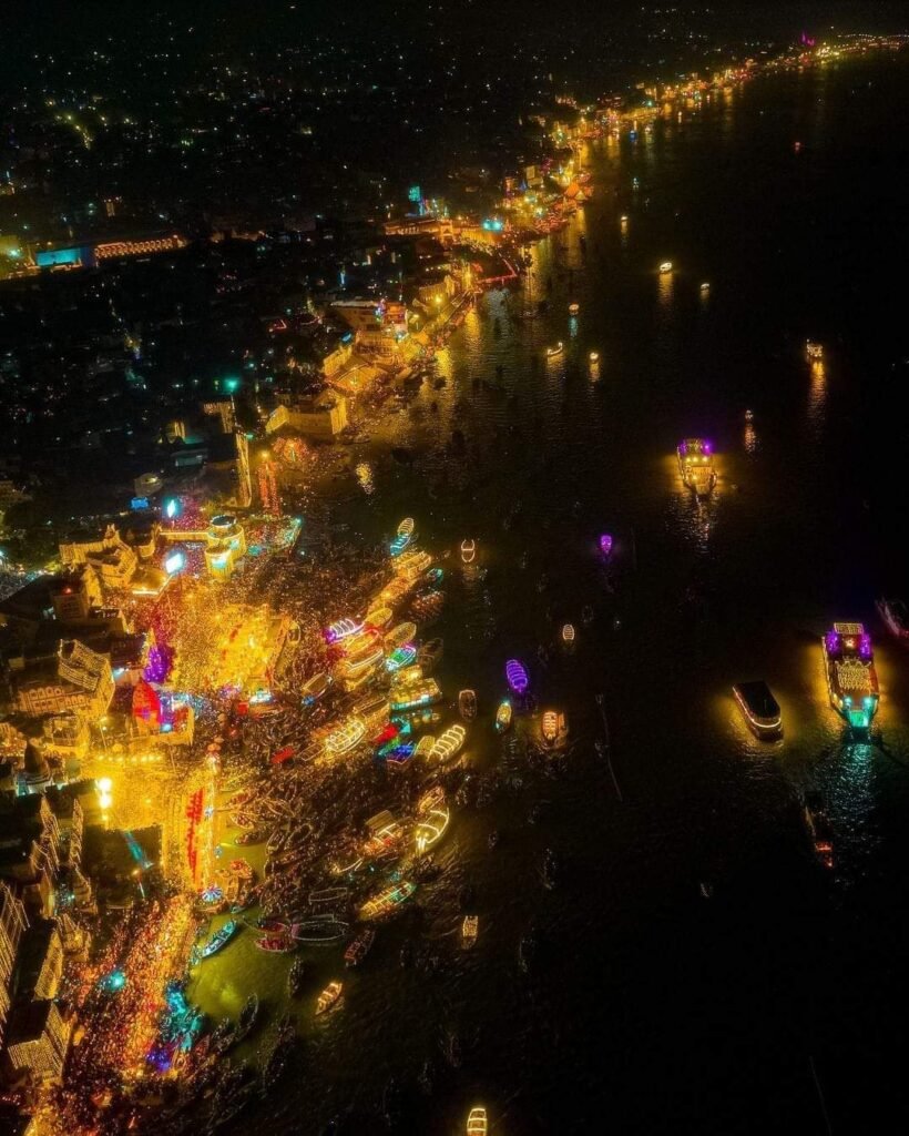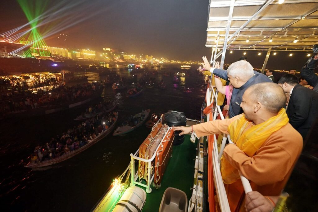 इसके उपरांत उपराष्ट्रपति, राज्यपाल और मुख्यमंत्री सहित अन्य मेहमानों ने क्रूज़ पर सवार होकर मां गंगा की महाआरती का दर्शन किया। इस दौरान नौका विहार करते समय पर्यटक भी अपने सीएम योगी सहित अन्य गणमान्य हस्तियों को पाकर खुशी से झूम उठे और हर-हर महादेव एवं जय श्रीराम के उद्घोष से उनका स्वागत किया। उपराष्ट्रपति और मुख्यमंत्री समेत क्रूज़ पर सवार सभी गणमान्य लोगो ने हाथ हिलाकर और हाथ जोड़कर पर्यटकों का अभिवादन स्वीकार किया। वहीं चेत सिंह घाट पर 3डी प्रोजेक्शन मैपिंग, लेजर शो और गंगा पार रेत पर आतिशबाजी के भव्य दृश्य ने उपस्थित सभी को मंत्रमुग्ध कर दिया। सभी घाटों पर शंखनाद, घण्ट-घड़ियालों की ध्वनि में भव्य महाआरतिआं काशी की धरती पर देवताओं का स्वागत करती दिखीं।